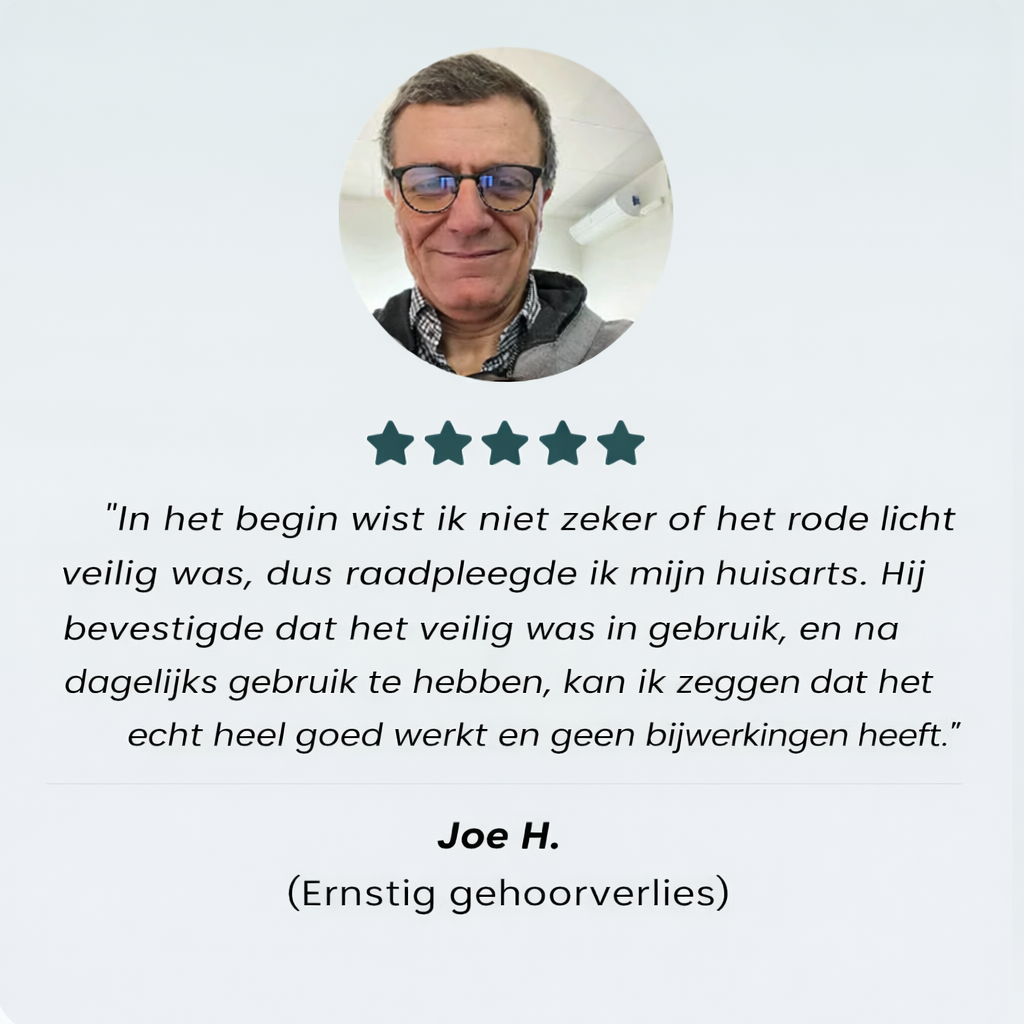 Ja, ReHears is veilig voor alle leeftijden. 650 nm roodlichttherapie is al jarenlang uitgebreid onderzocht en wordt in de geneeskunde gebruikt om celregeneratie en bloedcirculatie te bevorderen. Het veroorzaakt geen bijwerkingen en kan dagelijks zonder aarzeling worden gebruikt.