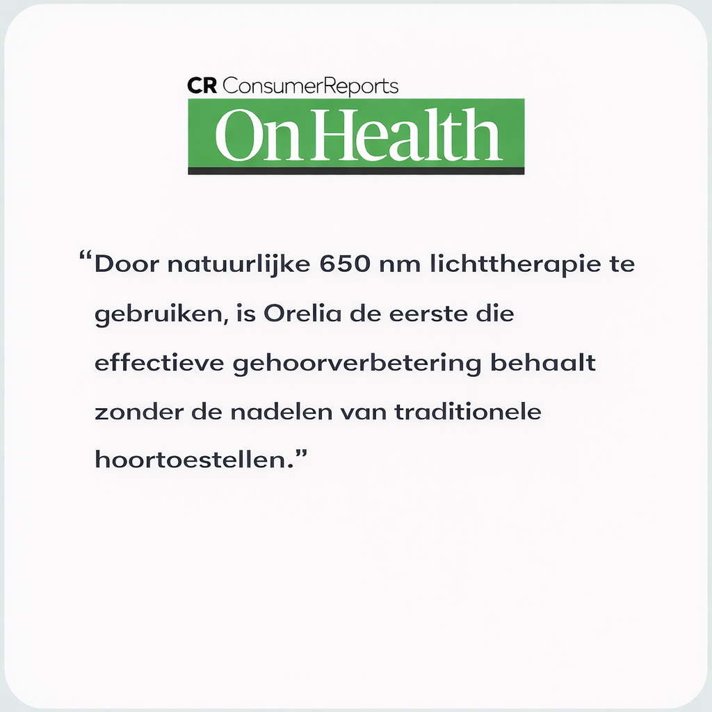 Ja, Orelia kan zonder problemen worden gebruikt met cochleaire implantaten – en halen er zelfs meer uit. Hoewel het CI de haarcellen vervangt, blijven het slakkenhuis en de zenuwcellen intact – en juist daar grijpt 650 nm lichttherapie in: het beschermt en stimuleert de cellen die elektrische signalen verwerken, wat de geluidswaarneming verbetert en de luisterinspanning aanzienlijk vermindert. Het bevordert ook het herstel na een operatie en helpt je sneller en gemakkelijker te wennen aan het horen met je CI.