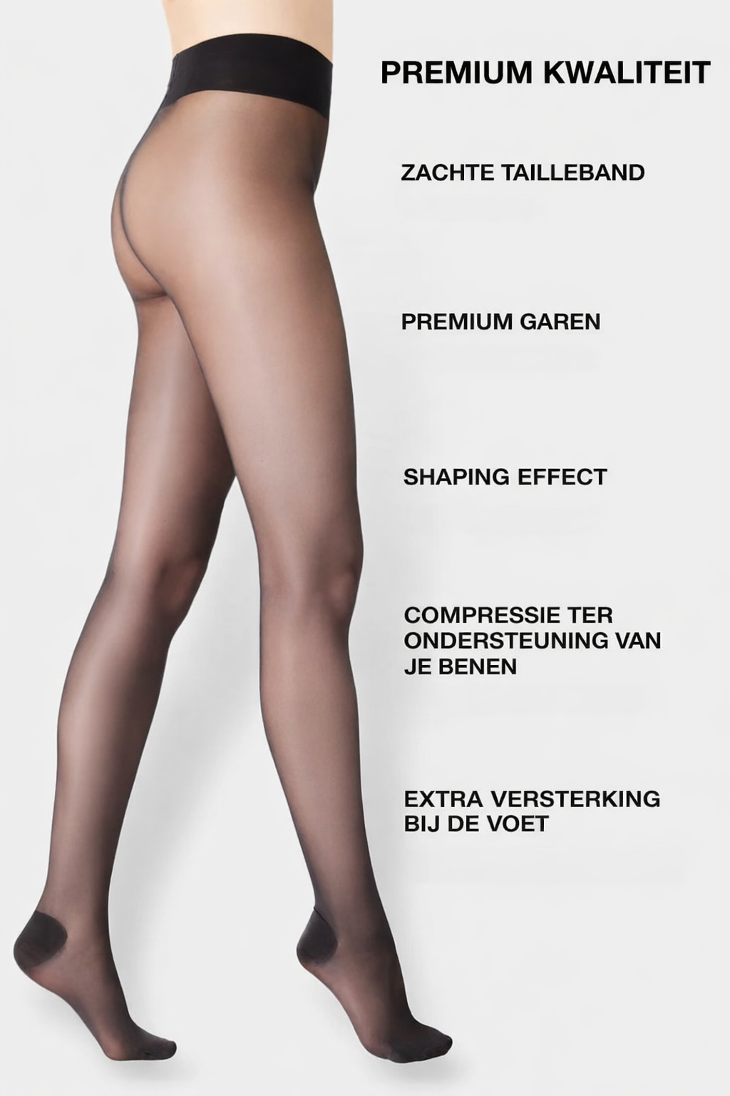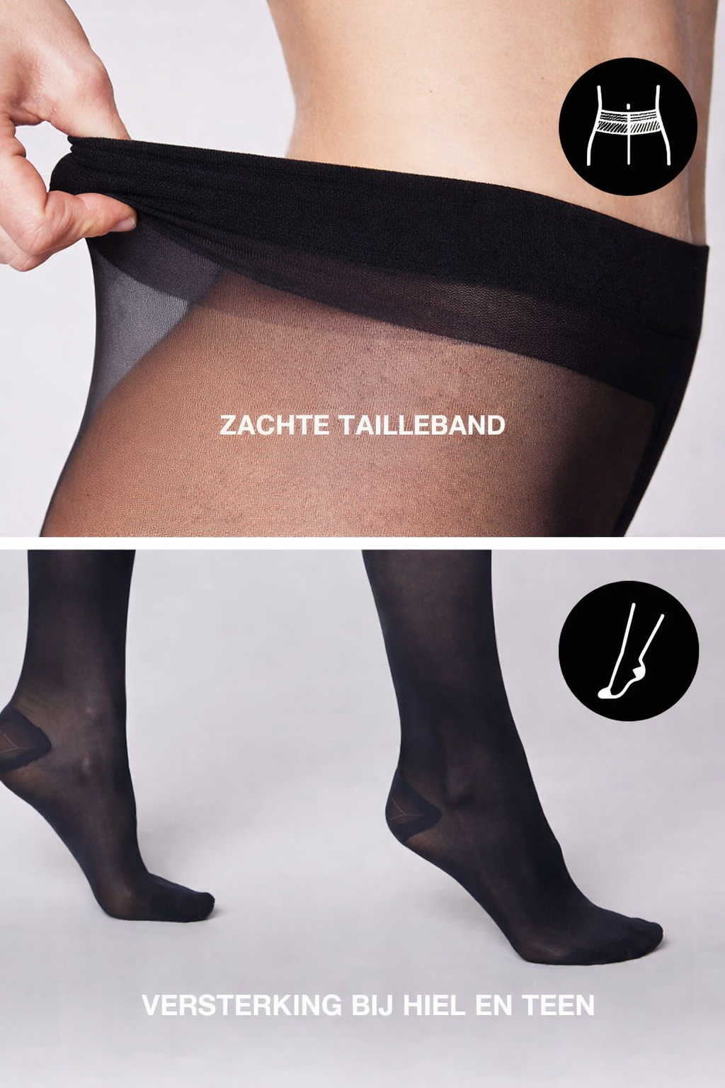 Onze “Superwoman” panty heeft verstevigde zones bij de tenen en hielen, precies op de meest kwetsbare plekken voor extra stevigheid. Dankzij het innovatieve ontwerp combineren deze panty’s elegantie met duurzaamheid, zodat jij je bij elke stap mooi en zelfverzekerd voelt.